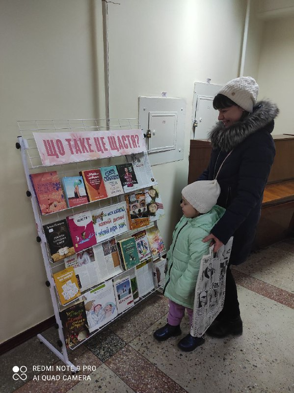 Сьогодні в фойє нашої бібліотеки користувачі змогли познайомитись з матеріалами виставки - запитання: "Що таке це щастя?"